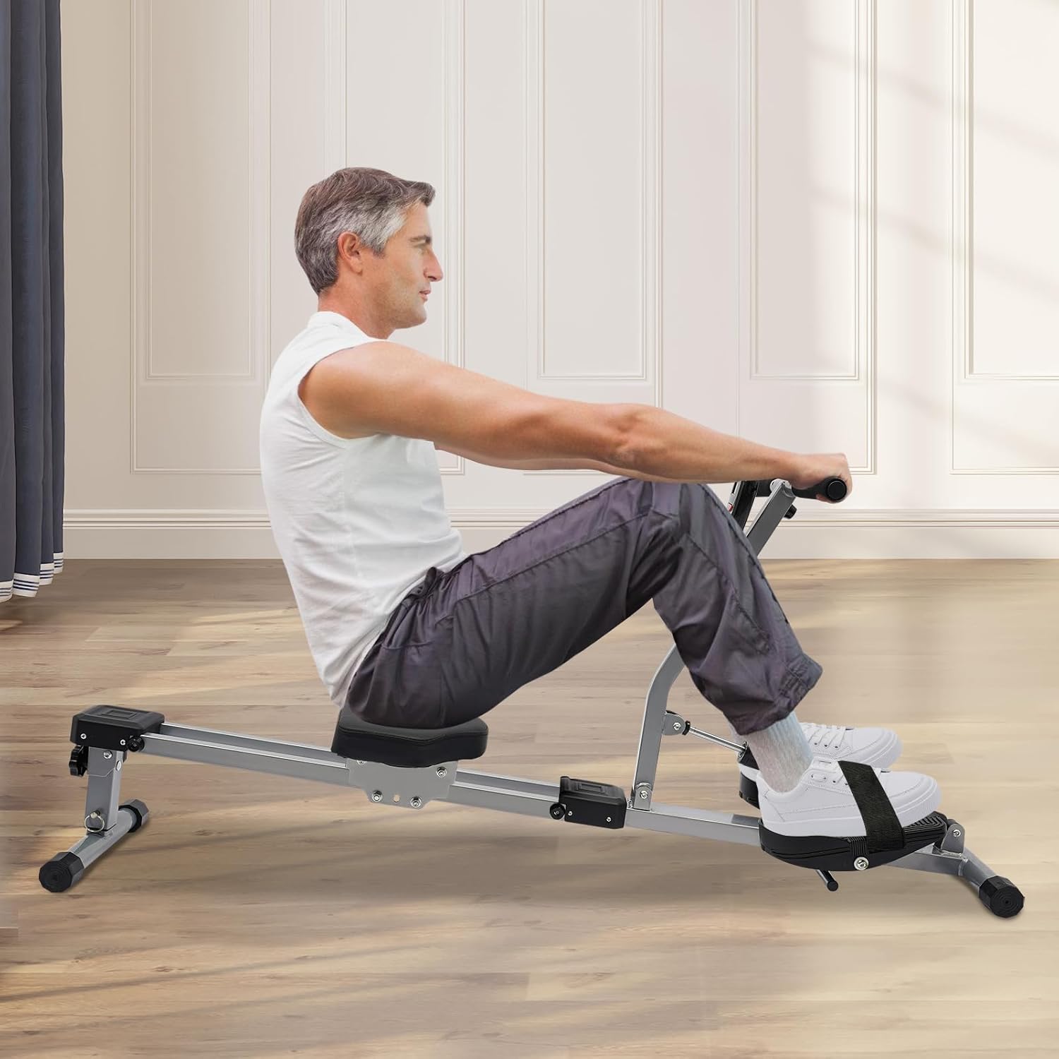【Excellent Load-Bearing Capacity】: The 1.2mm thick pipes and stable triangular structure give this foldable rowing exercise achine a load-bearing capacity of 264.55 pounds, which can meet the sports needs of most ordinary adults.