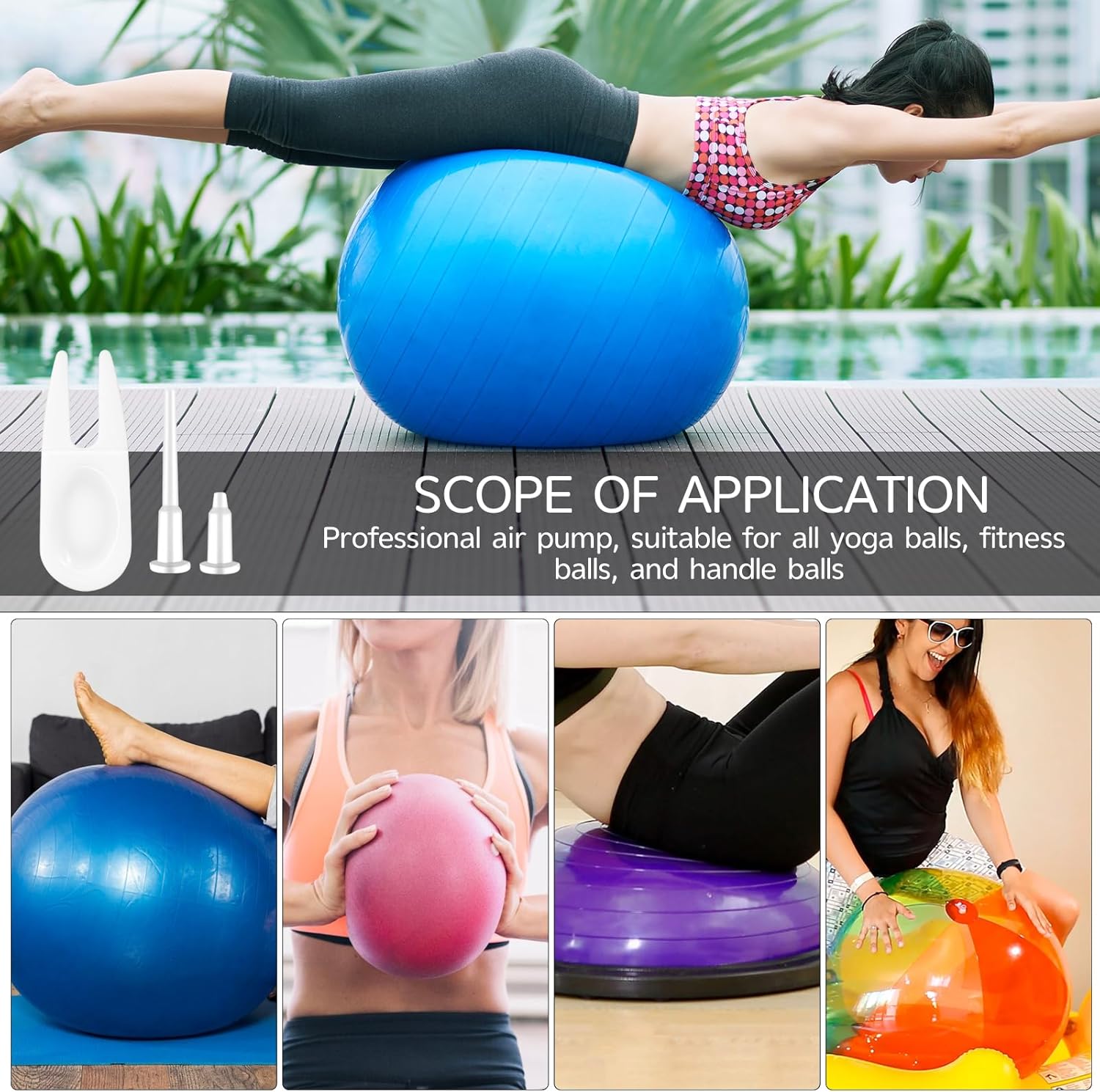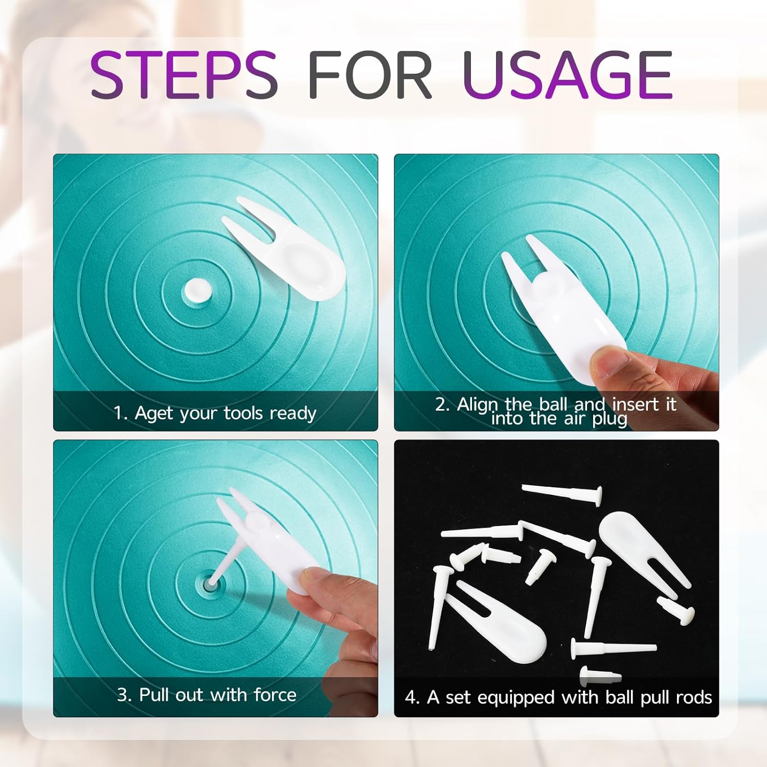 Versatile Size Options: With both small and large plugs included, our kit caters to various exercise balls such as fitness balls, yoga balls, Pilates balls, and more. The range of sizes ensures a secure fit for different ball dimensions, enhancing versatility and usability.
