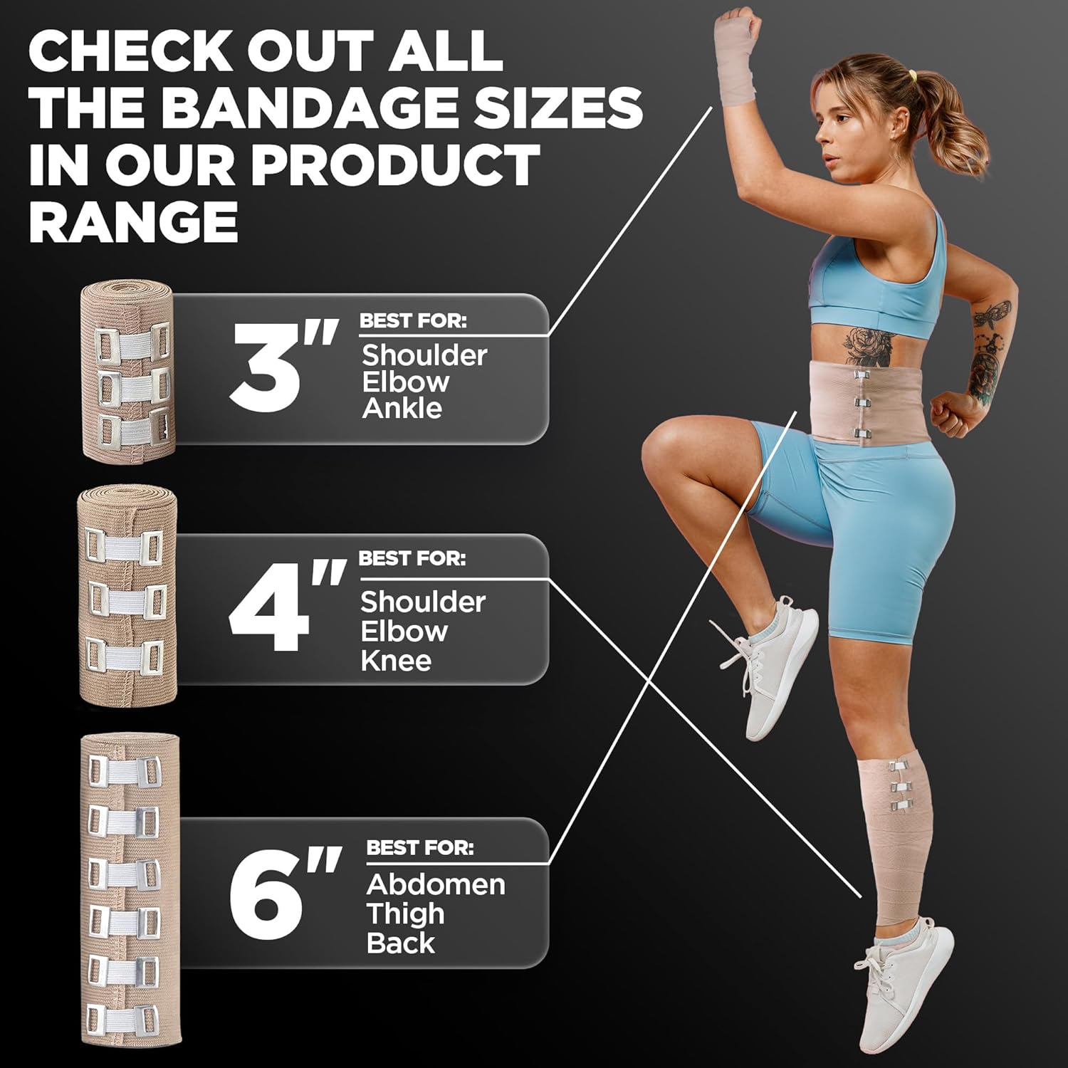 VALUE PACK — Your package includes four rolls of premium elastic bandage wraps, two 3-inch rolls, and two 4-inch rolls. The smaller one is perfect for covering smaller areas, while the larger compression bandage wrap is ideal for larger areas. You also get three varieties of clips included, ensuring optimal selection for your needs.