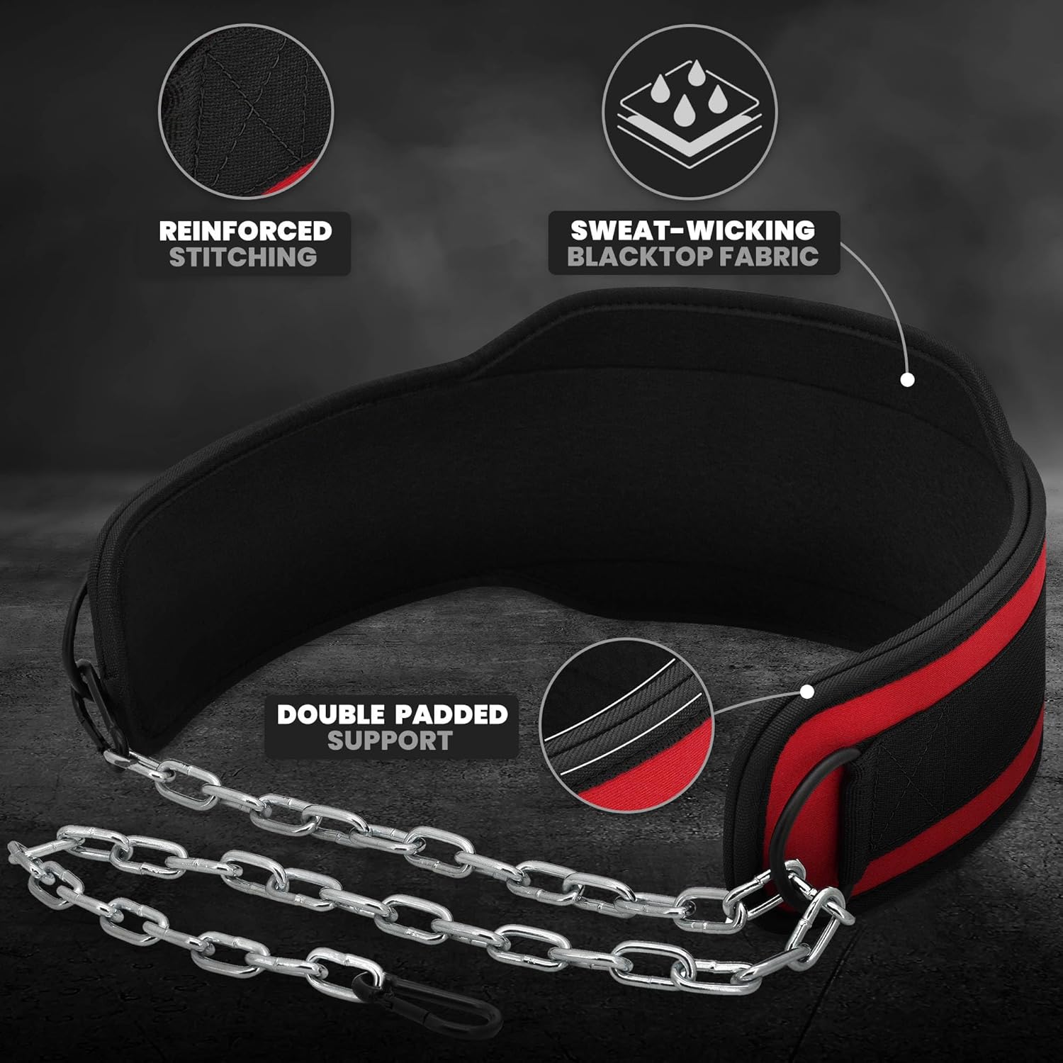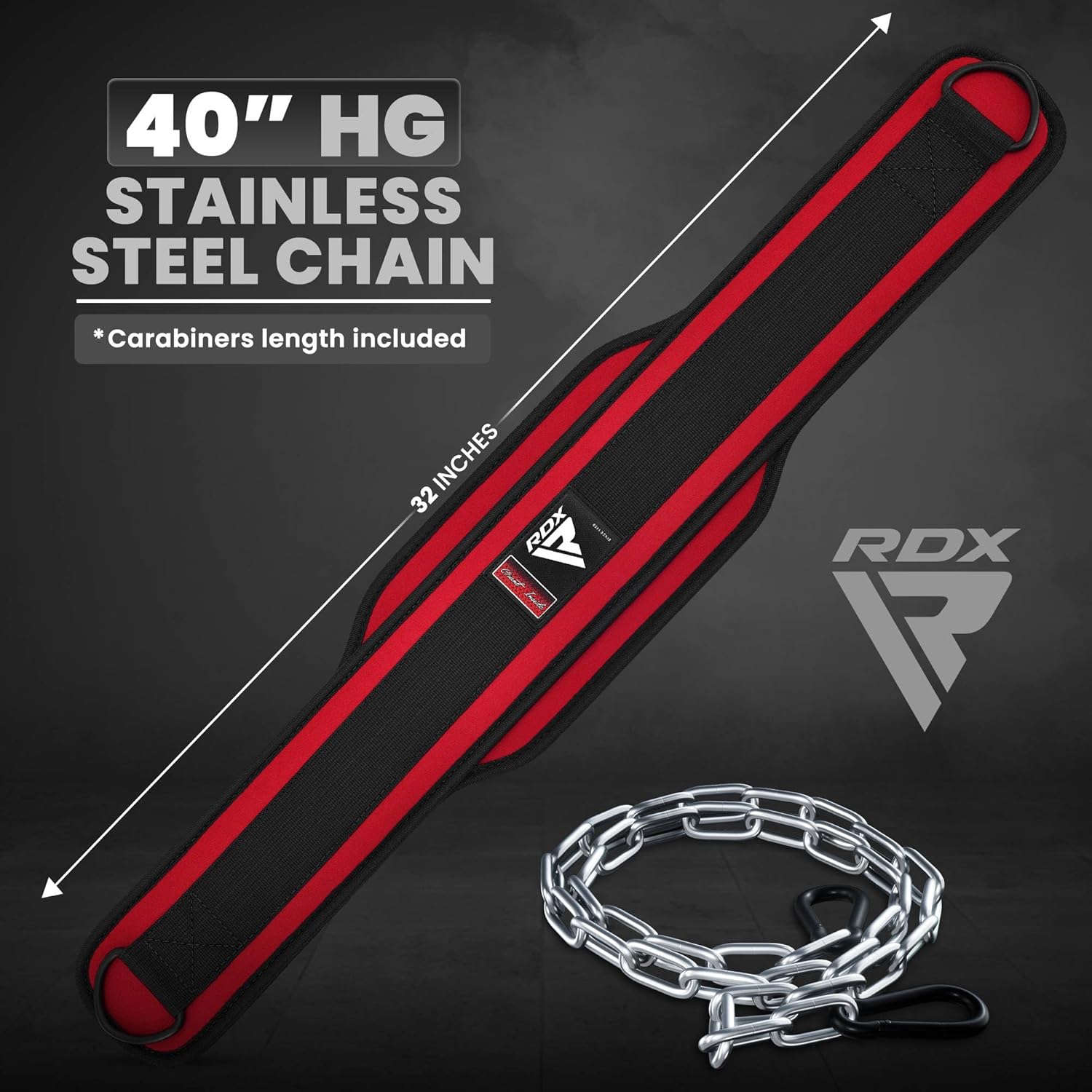 RDX Dip Belt for Weight Lifting, Heavy Duty 36 Inch Adjustable Steel Chain, Dipping Belt Chin Pull Ups Gym Training Bodybuilding Powerlifting Fitness Workout, 6” Padded Neoprene Back Support Men Women