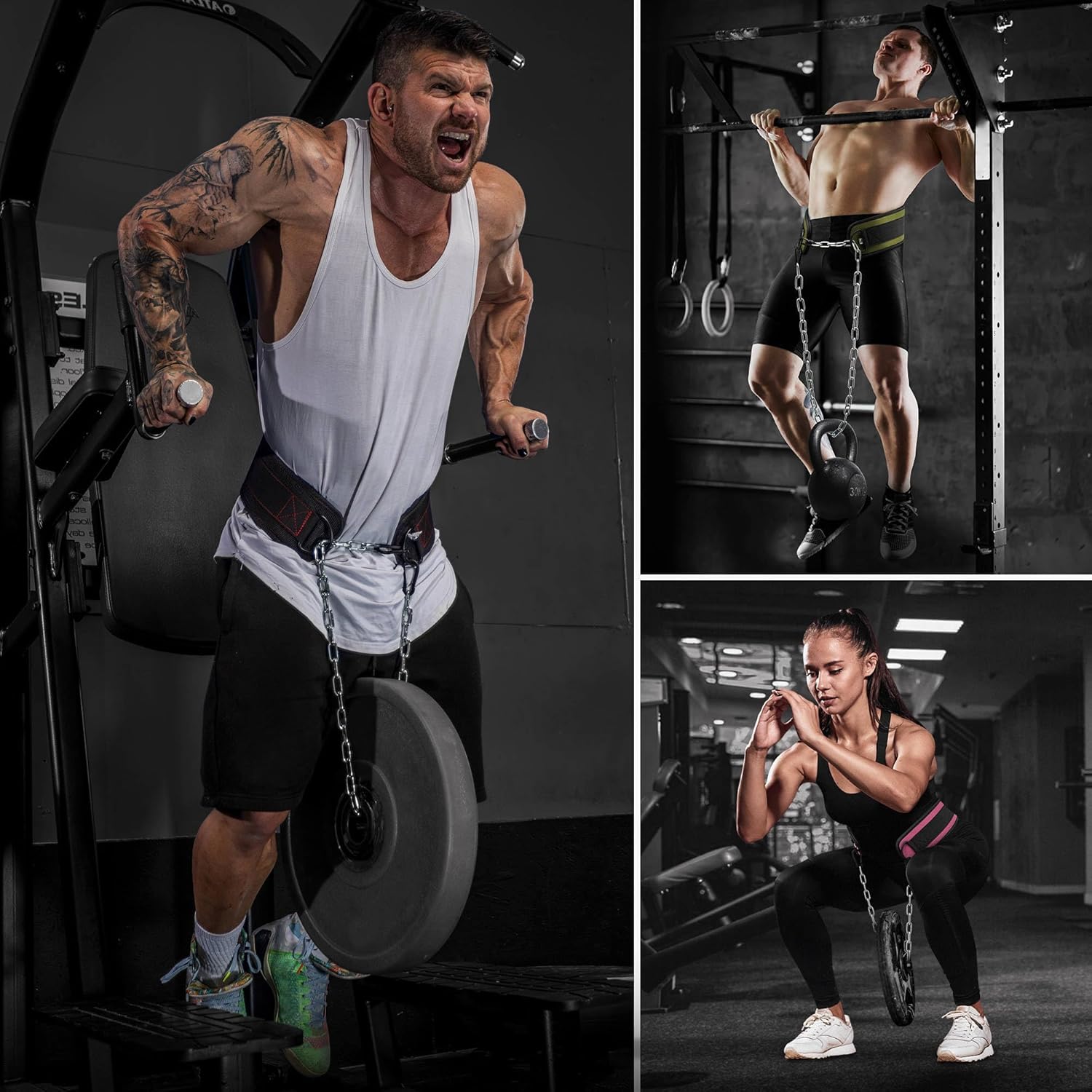 UPTO 600LBS HIGHER WEIGHT CAPACITY Robust gym belt for weighted pull-ups is one of those few pieces of equipment that are not easy to find, and RDX is here to help its customers out of this tight corner. With the robust 36-inch-long 7-gauge HG stainless steel chain, this chained weight belt can bear a maximum of 600lb weight.