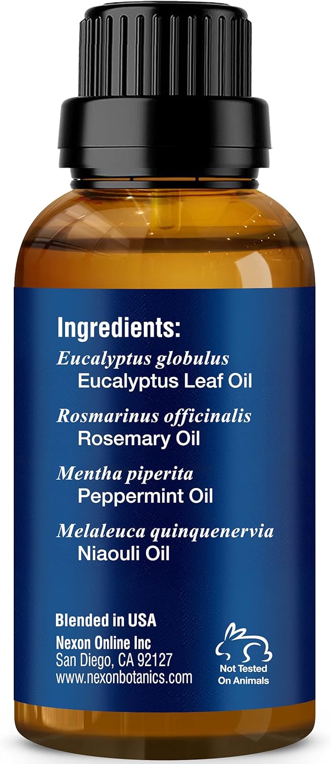 Nexon Botanics Breathe Essential Oil Blend consists of a proprietary combination of Rosemary, Peppermint, Niaouli and Eucalyptus essential oil; All oils are therapeutic grade.