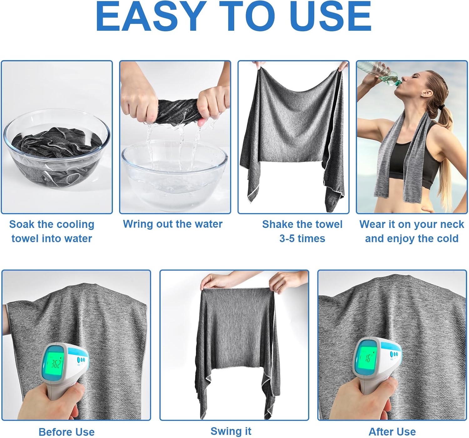 💦【QUALITY MATERIAL】- The cooling towel is made of hyper-evaporate breathable cationic fabric with a mesh pattern. This soft ice gym towel is chemical-free, hard-wearing, breathable, super absorbent and dries quickly. Cationic fabrics can provide moisturizing effects in low humidity environments, which is beneficial for maintaining skin health. Perfect for sports ,travel, bath and spa.